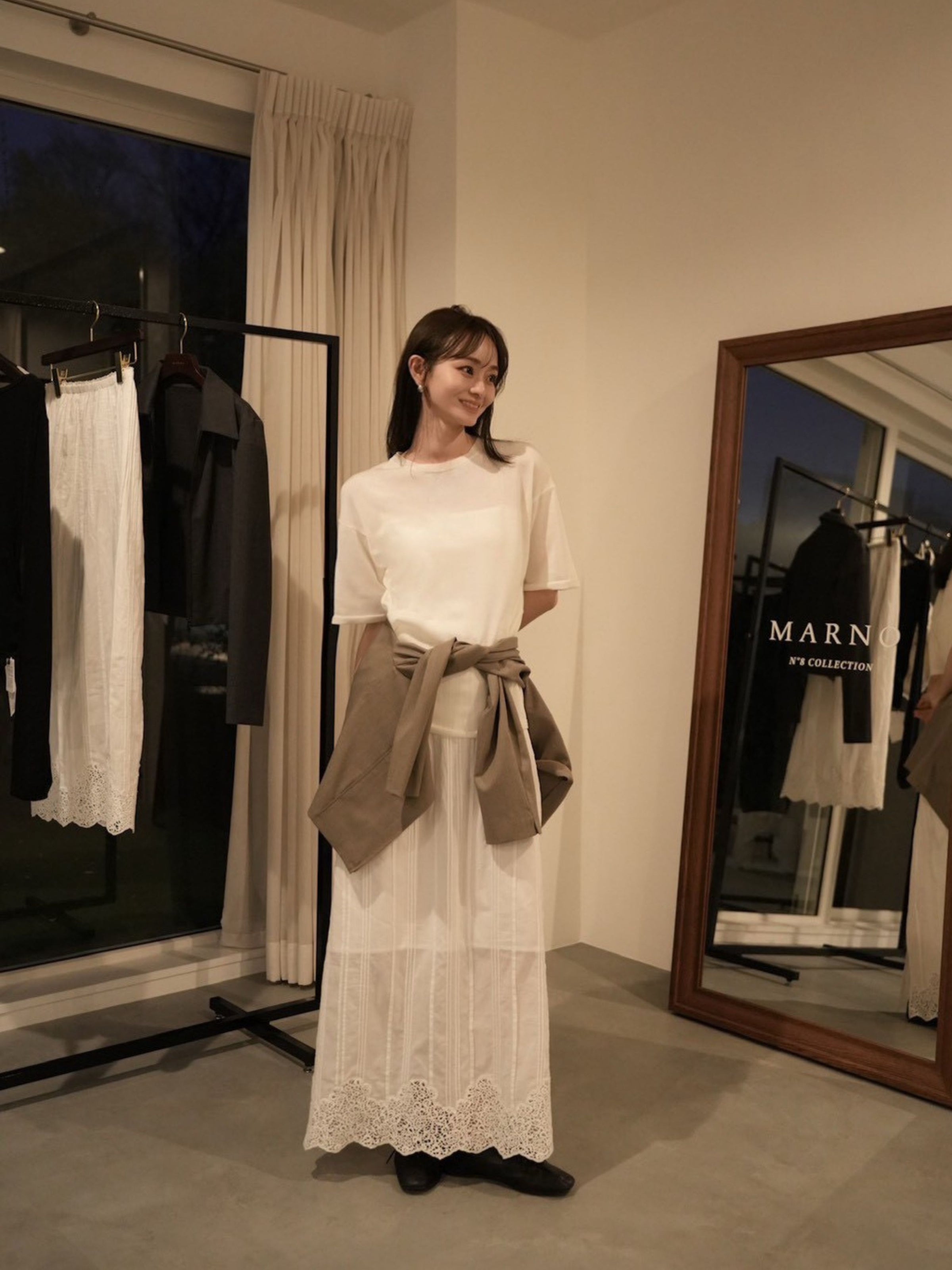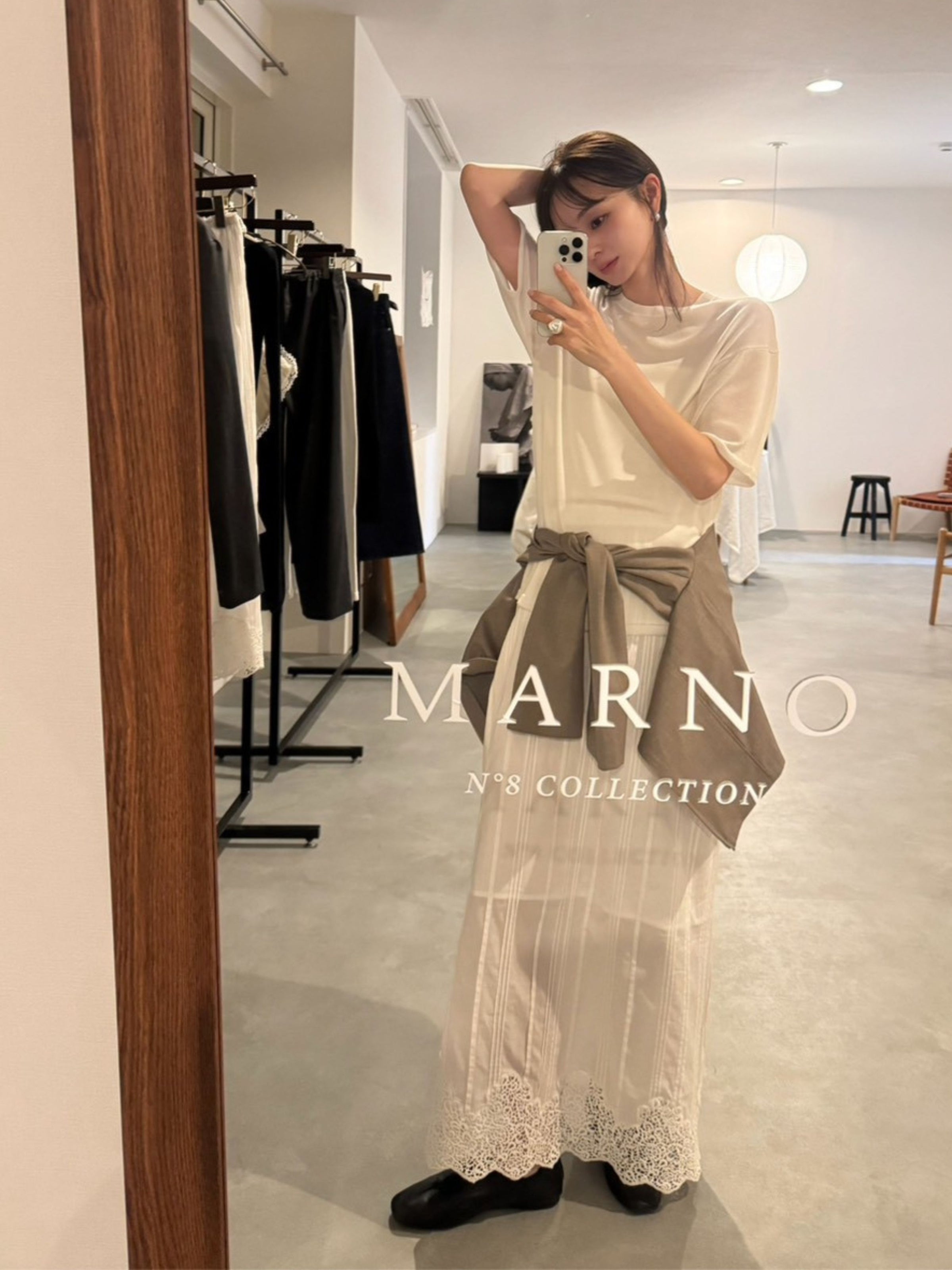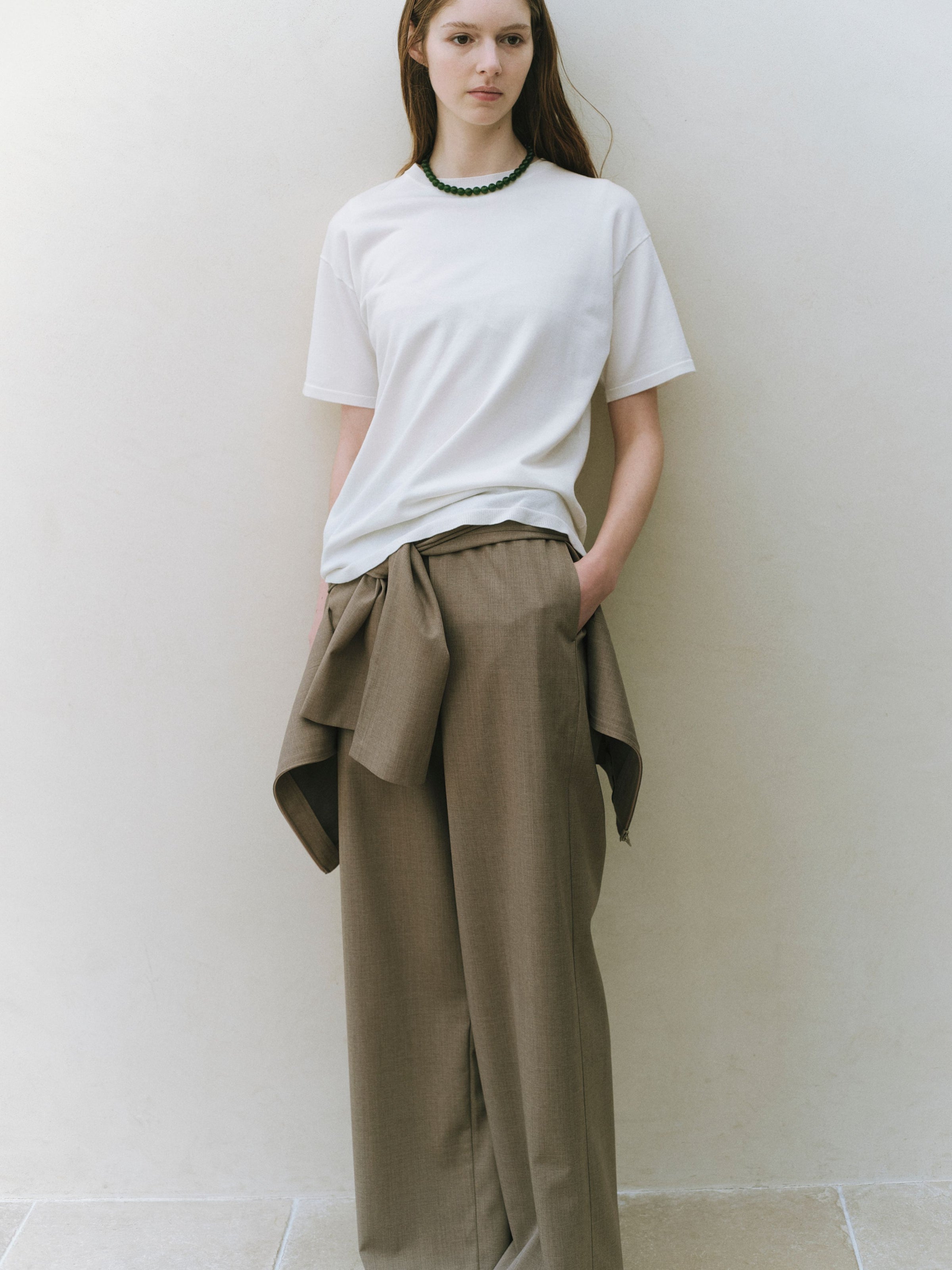程よい透け感が自然な抜けを生み、夏場の白Tの代わりとしても活躍。カジュアルに傾きすぎず、上質でリラックス感のあるスタイルへと導きます。レーススカートにゆるりと合わせたり、デニムにインしてすっきりと着こなすことも可能。