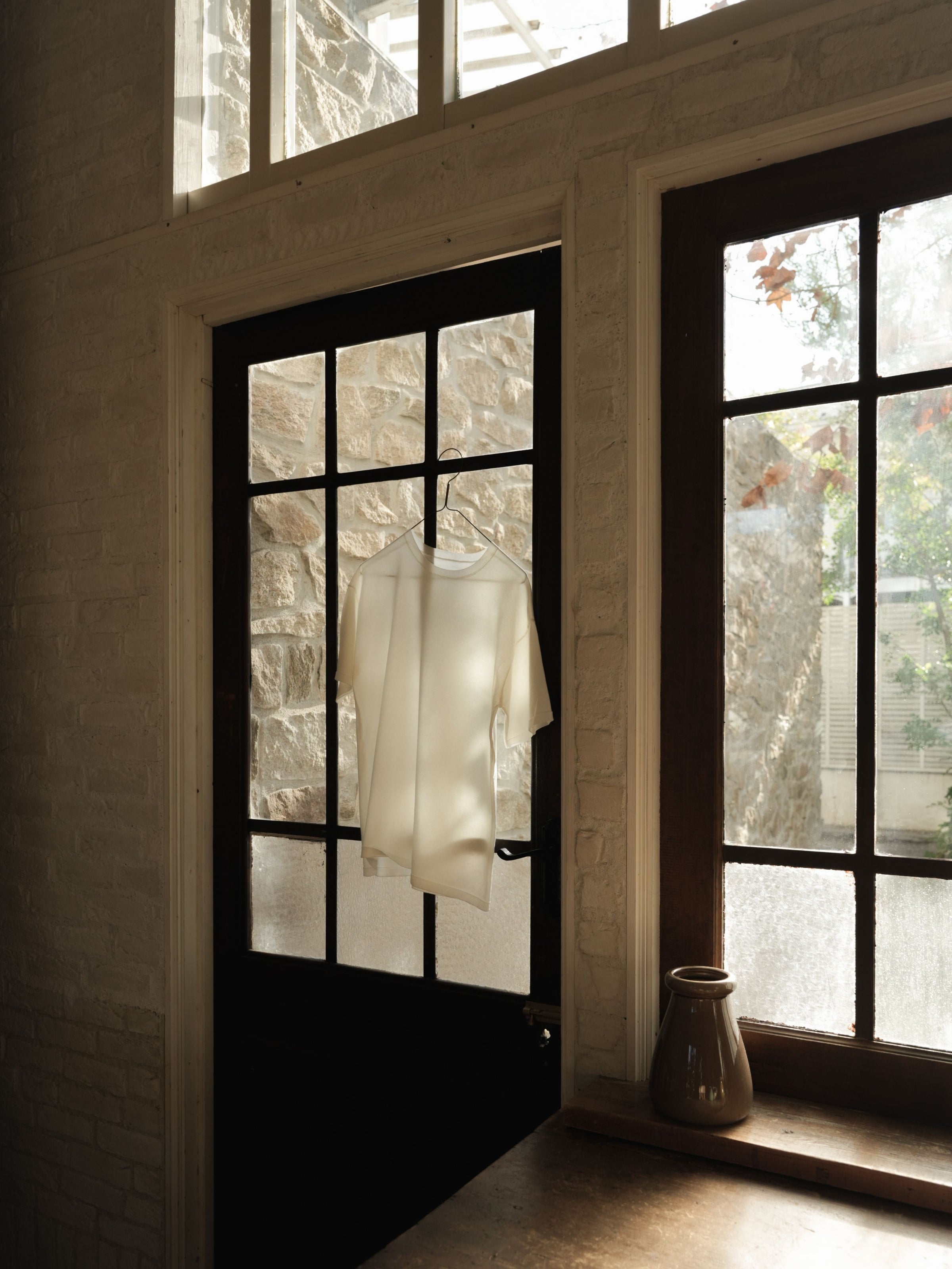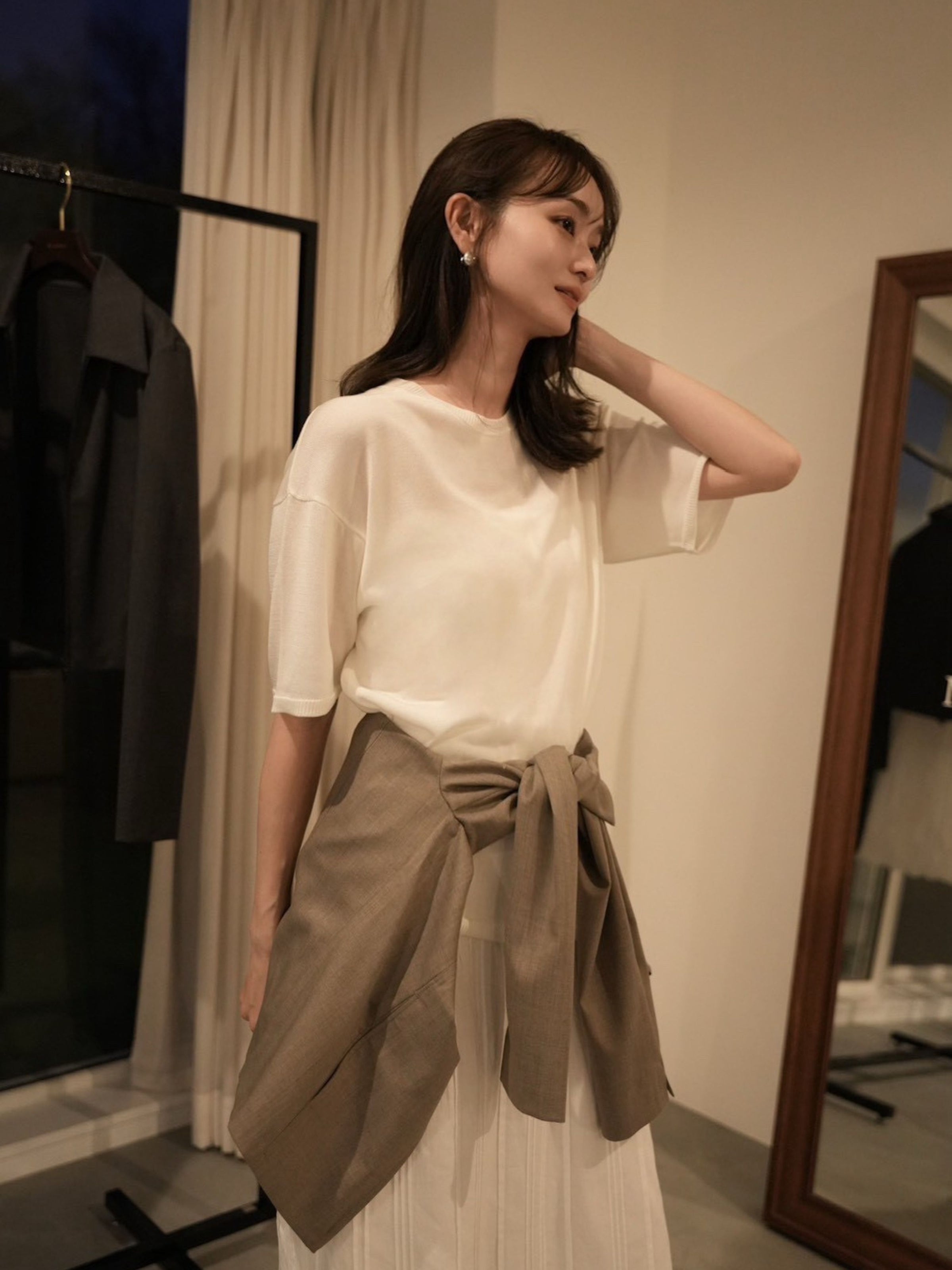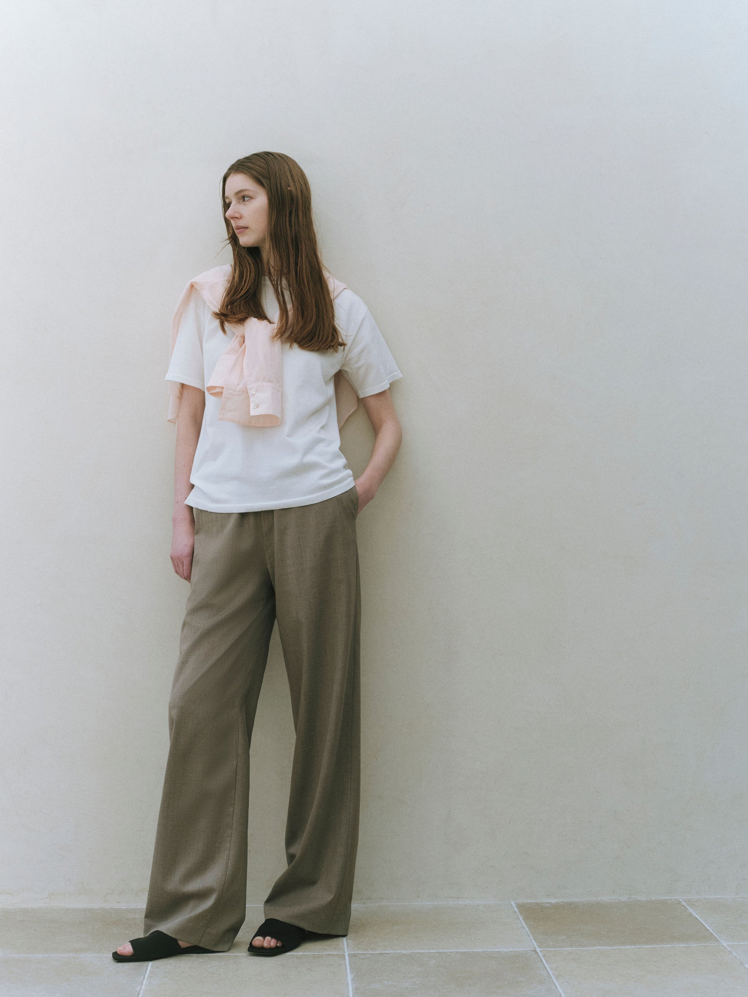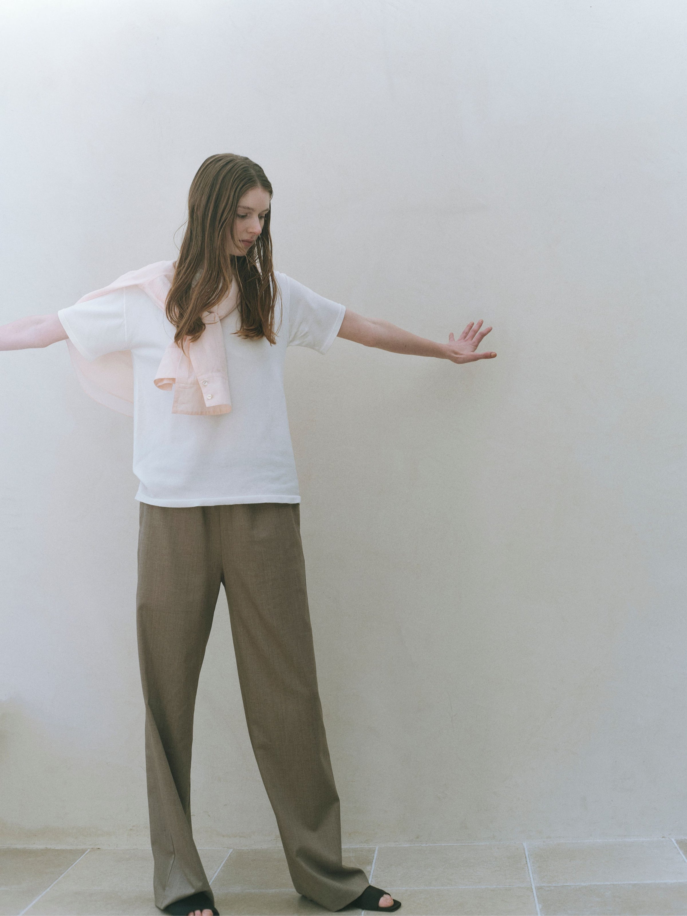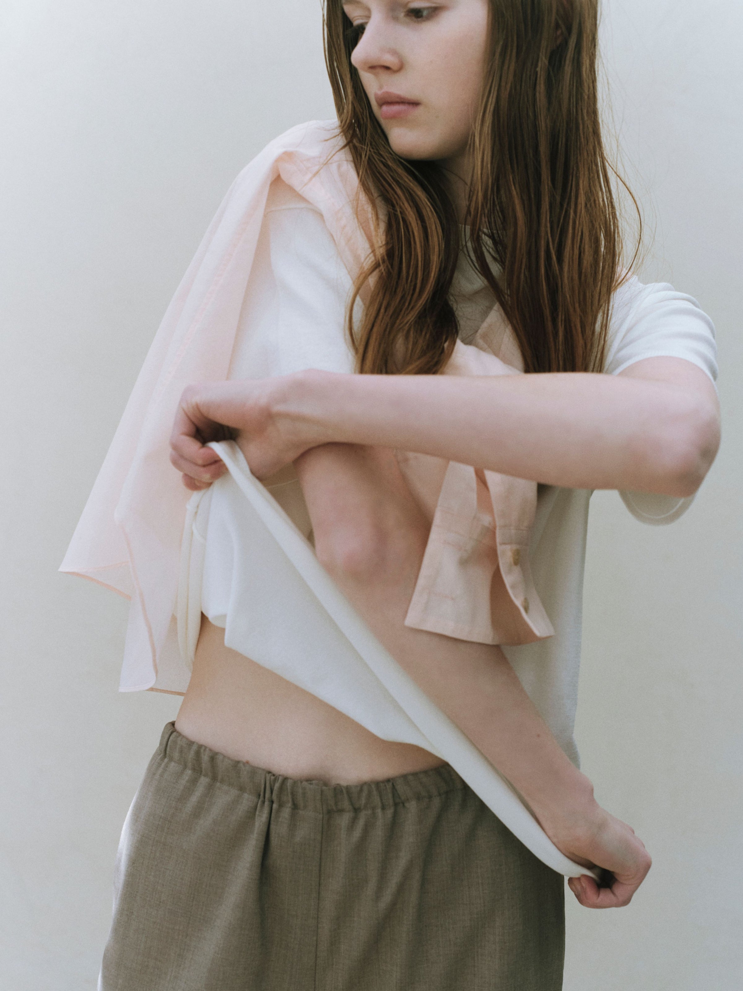 一枚でも、インナーとしても成立し、重ねるアイテムの表情を邪魔することなく、全体に軽さと奥行きをもたらします。
