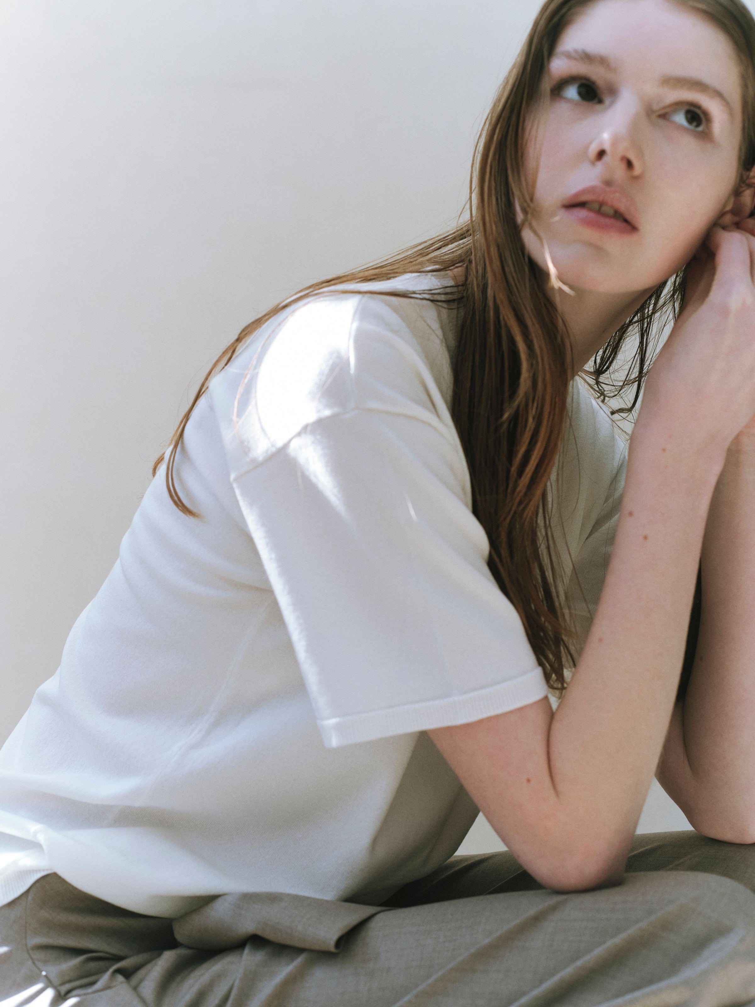 植物由来のサスティナブル素材にシルクをブレンドしたHailey Tは、スタイリングに「透明なレイヤー」を加える存在。