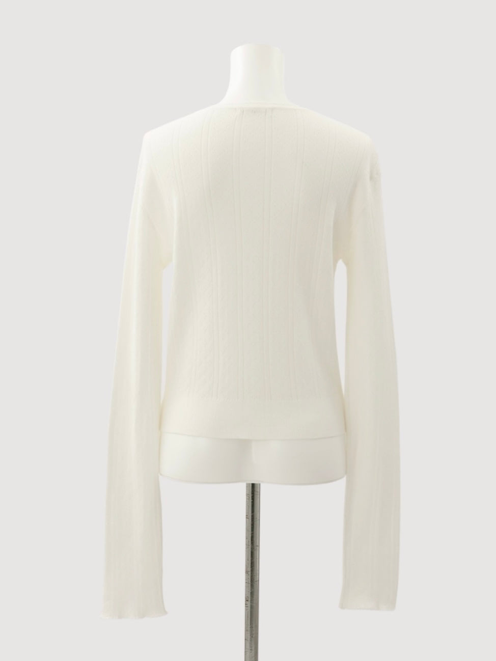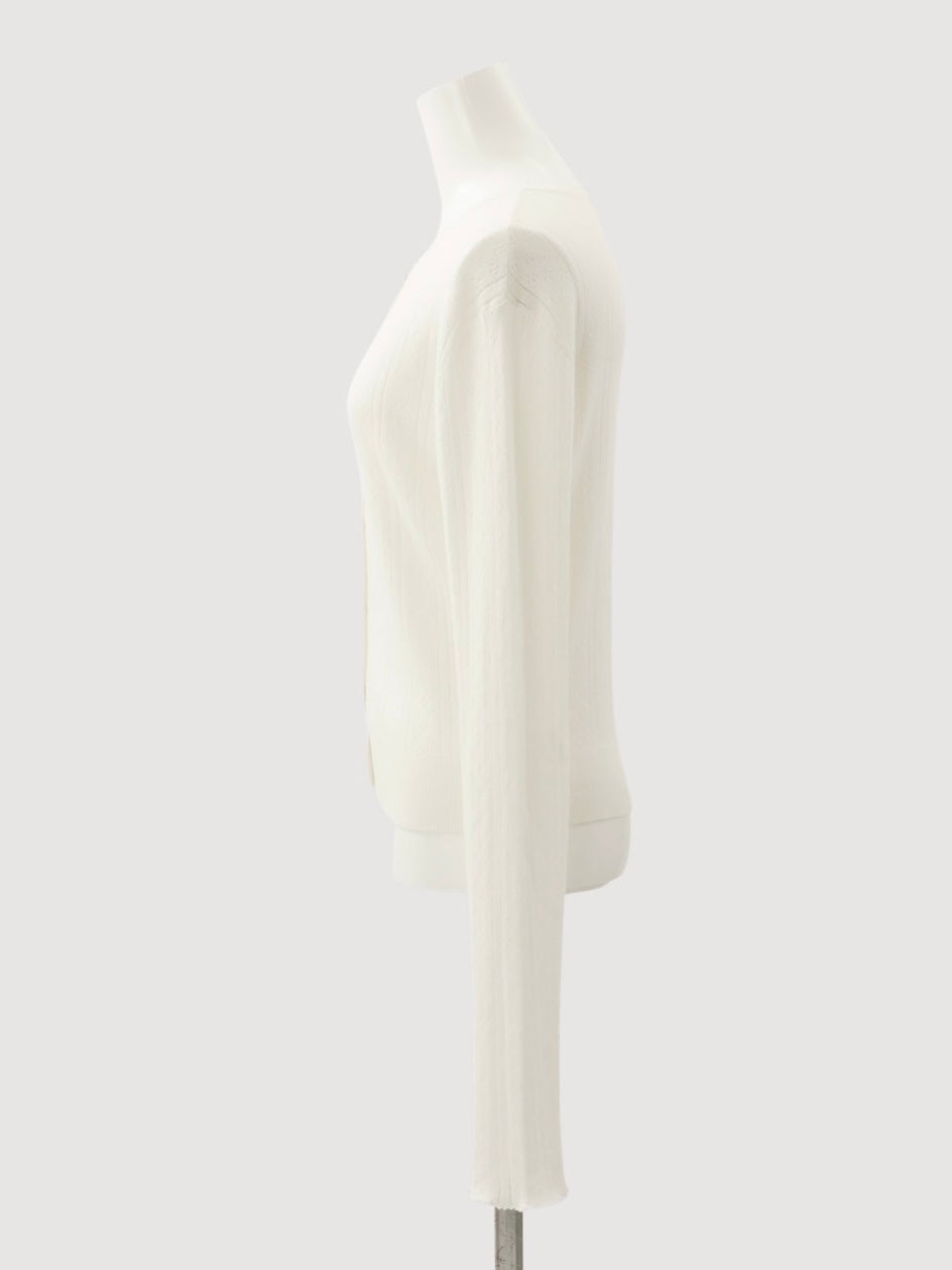 MARNOオリジナルで描いたレースのような繊細な透かし編みと、計算されたシルエットが美しく調和したニットカーディガン。