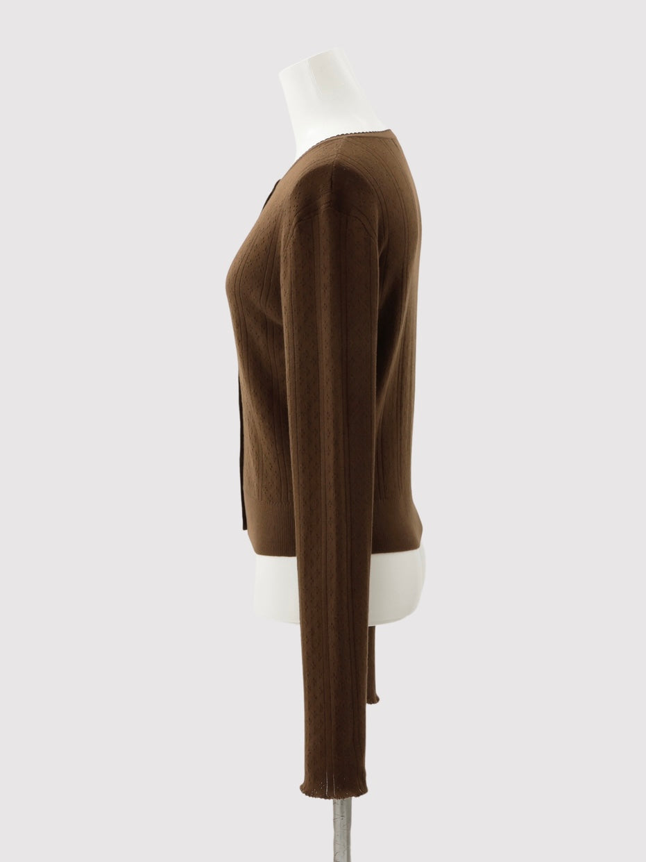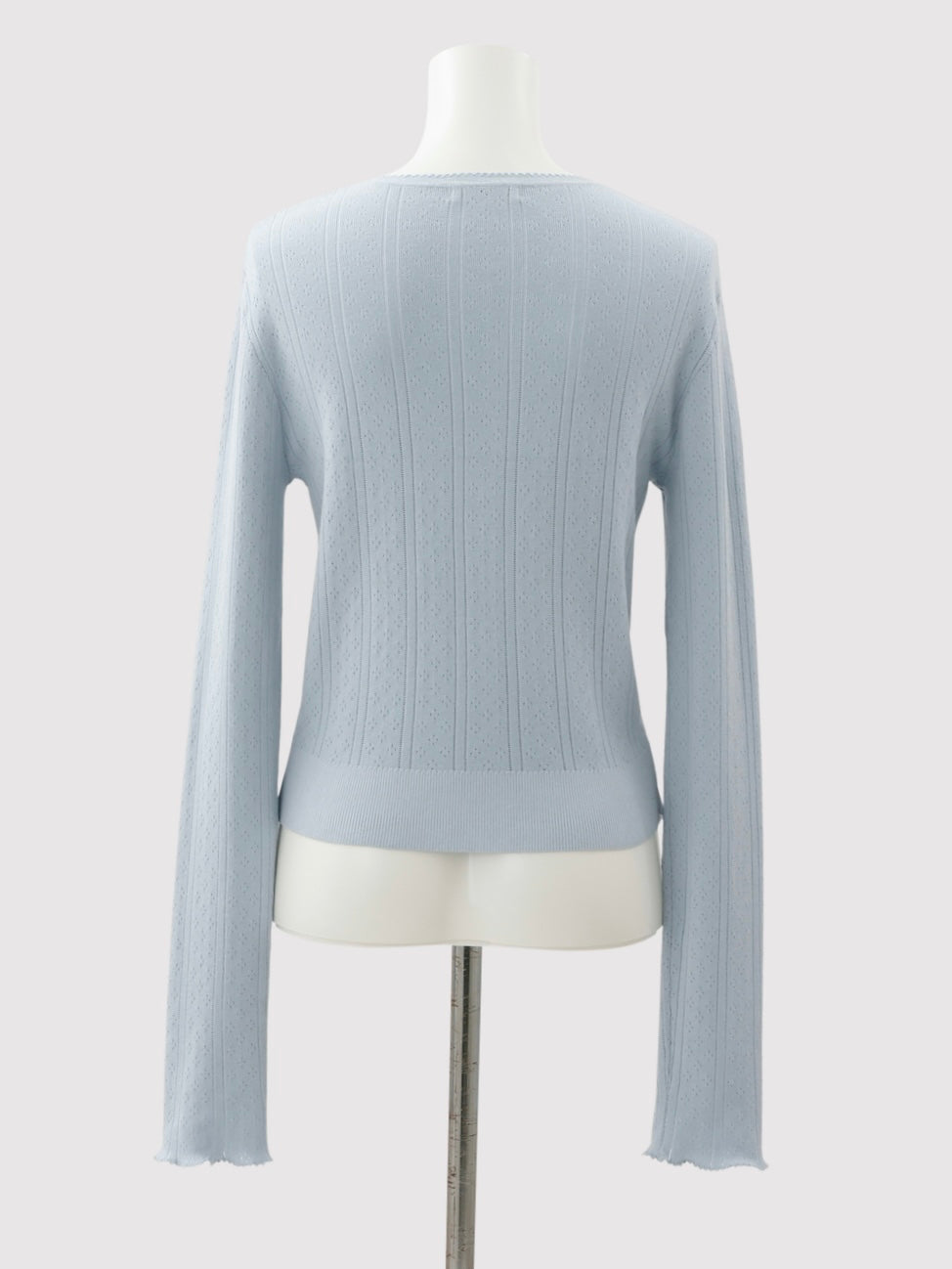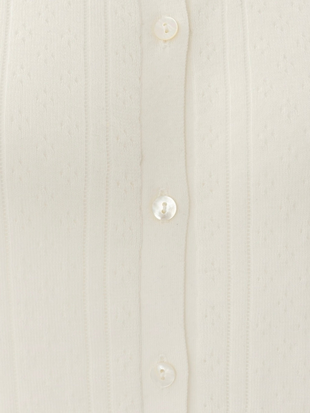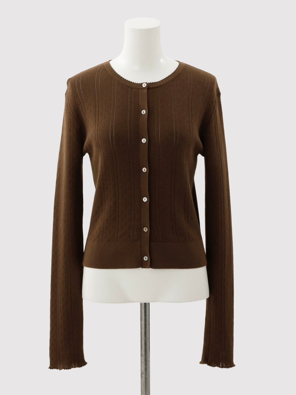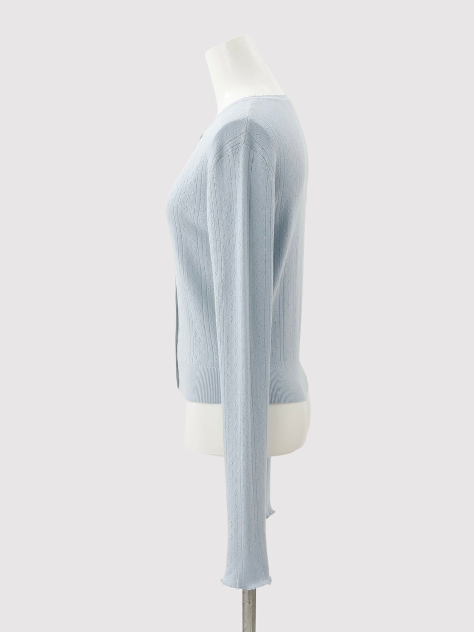 やわらかなオーガニックコットン素材を使用した、肌触り抜群のアイレットカーディガン。