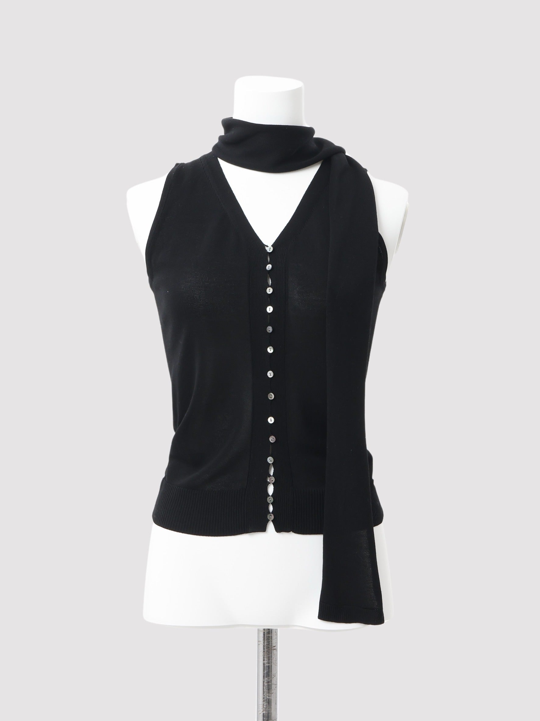 シンプルでモードな顔を持ちながらも、肌や環境に対しても配慮した優しさのあるアイテムです。ボタンの開け具合、同素材のタイ使いで様々な表情を楽しんでいただけます。