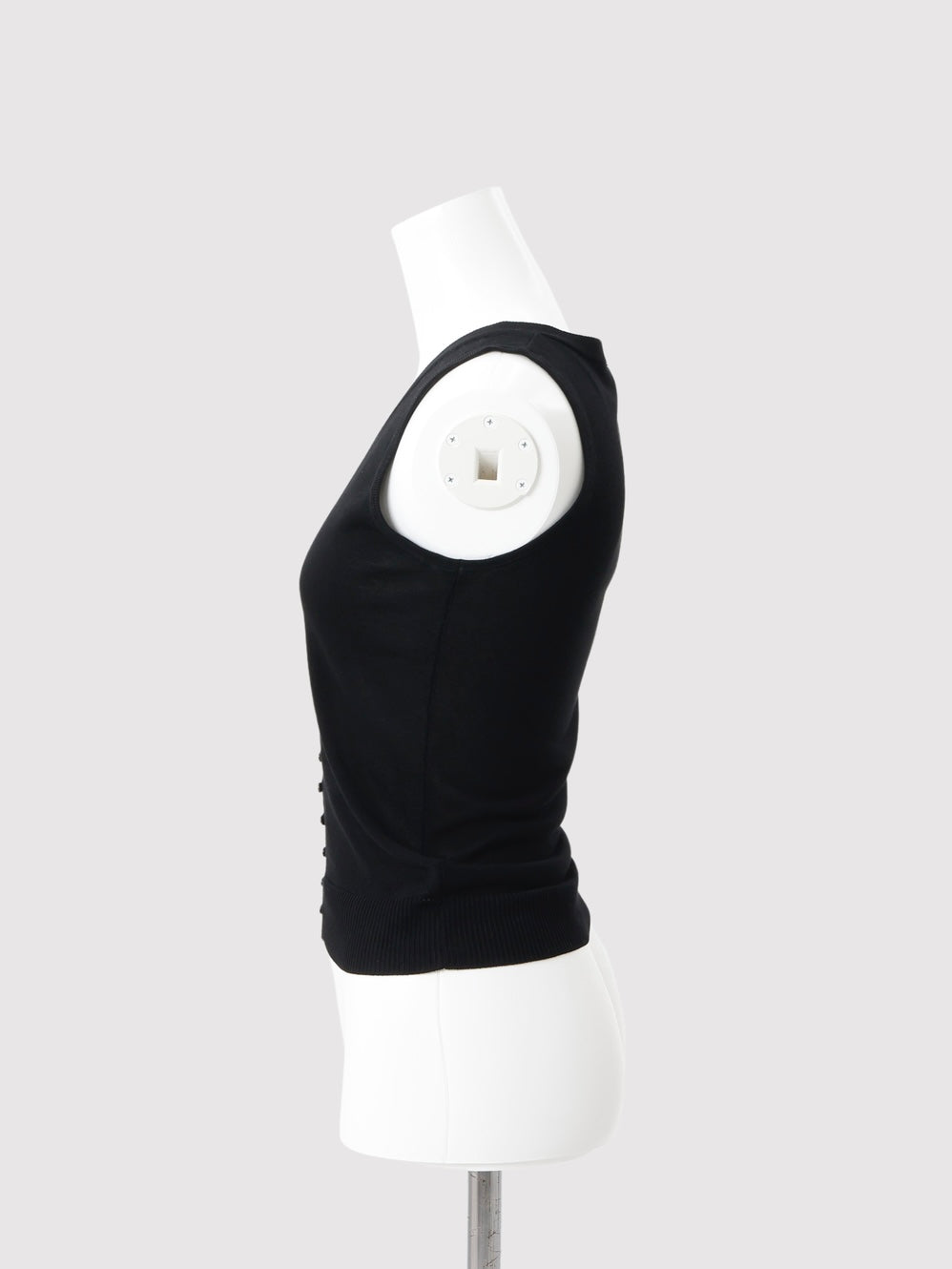 着やすさを考慮しながら、少し深めに設定したVネックが首元からデコルテにかけてのラインを美しく見せ、一枚で完成度の高い、洗練されたモードな印象に仕上げています。