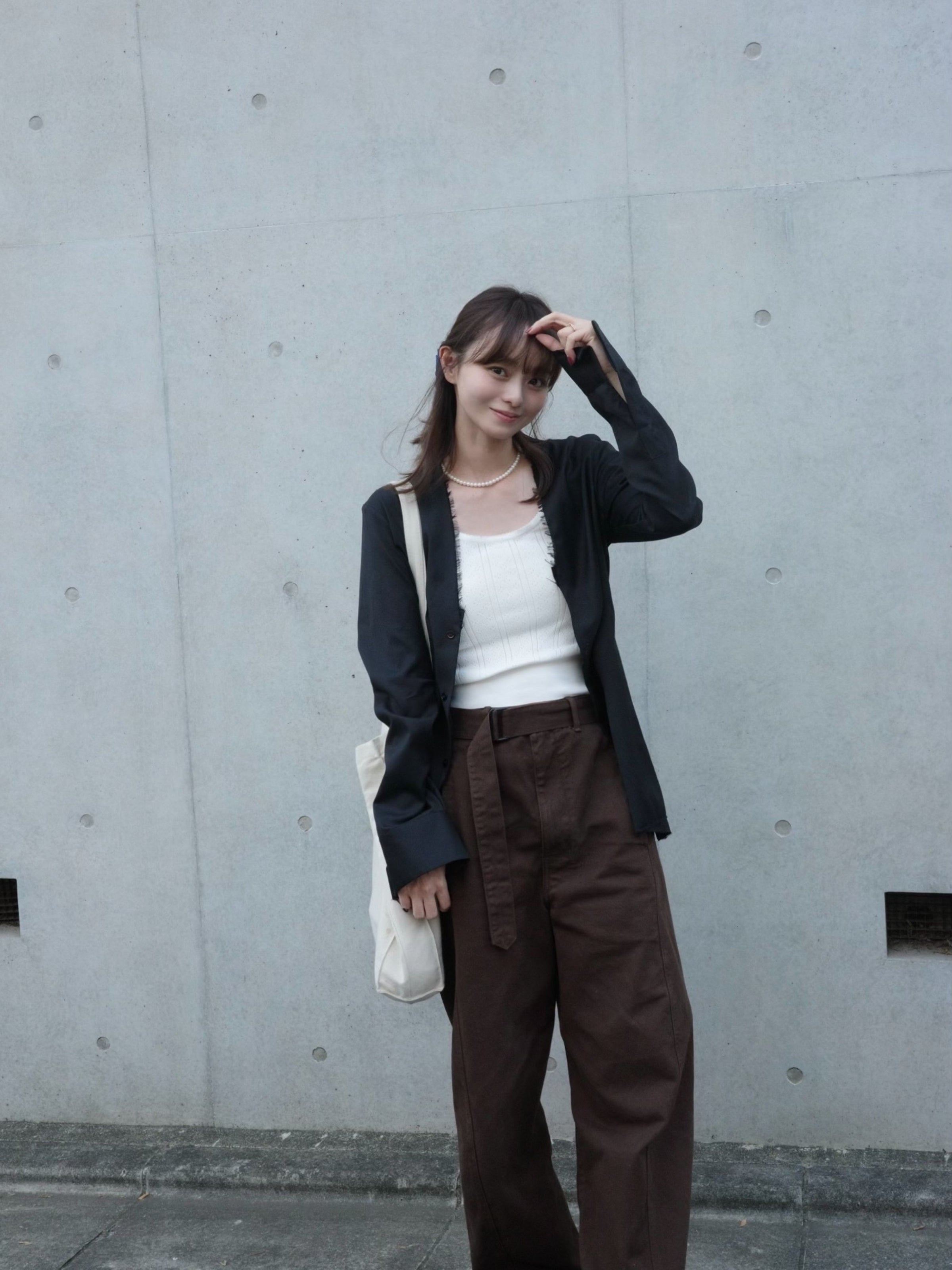ジャケットやスラックスなどの綺麗めなアイテムと合わせれば、ほどよい抜け感とレトロな雰囲気のスタイリングに。シワにもなりにくいので、旅行にも最適。同素材のマルグリットカーディガンとセットで着てあげるのもとても可愛いです。着回し力の高さとコーディネートの幅を叶えてくれる優秀タンクです。カラーバリエーションも魅力的で、どの色もコーディネートのポイントに。色違いで揃えたくなる、デイリーに頼れるアイテムです。